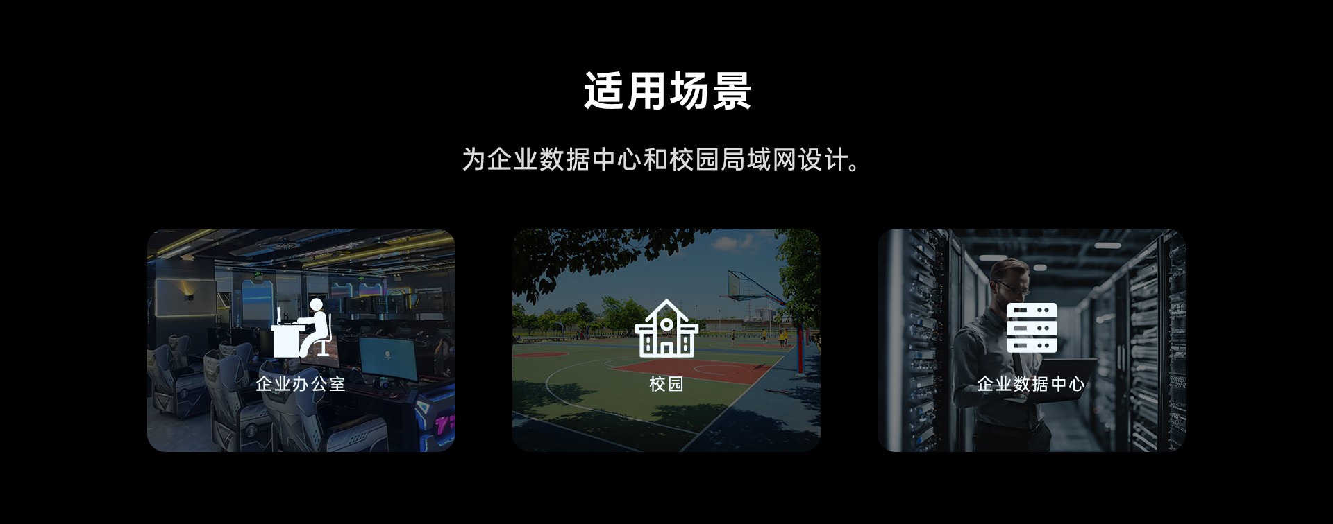 采用先进的硬件架构,具有48*25GE 接入端口和多个100GE 上行链路